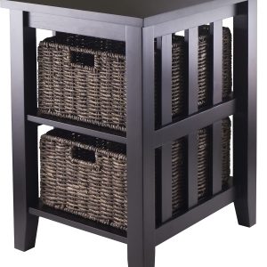Morris Accent Table with 2 Foldable Corn Husk Baskets, Espresso and Chocolate