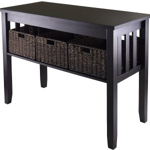Morris Console Table with 3 Foldable Corn Husk Baskets, Espresso and Chocolate