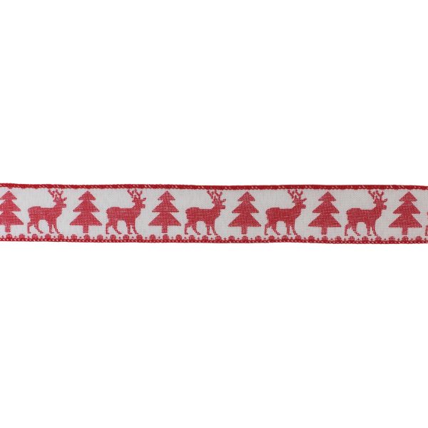 Embellish your home decor items, gift wrap, craft projects, and more with this beautiful Wired Holiday Ribbon. Measuring 2.5″x10 yards in length, the roll of ribbon features a deer and Christmas tree design. The classic red and white tones paired with quality polyester and iron wire composition is the perfect combintion to create a stunning holiday display. Use this ribbon to make hand-tied bows to adorn onto your Christmas presents or holiday wreaths, or embellish your Christmas tree with a trailing ribbon garland.