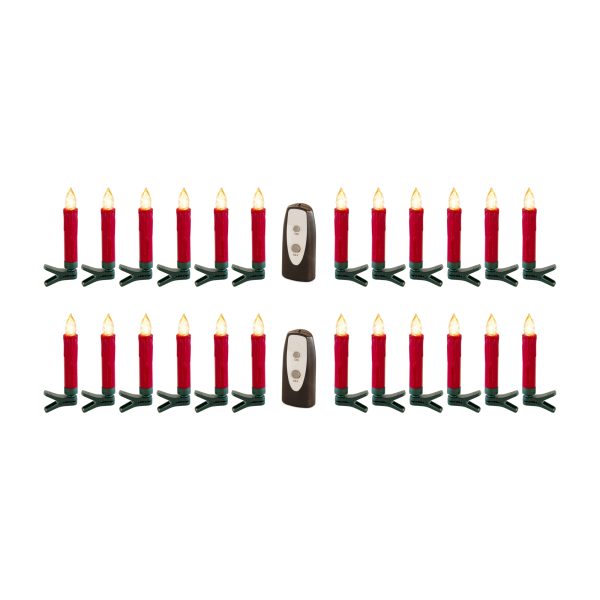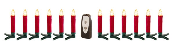 Add the beauty and ambiance flickering candles to your home with this stunning set of Red LED Clip-on Taper Candles. It has the appearance and texture of a real candle, but does not lend to the burnt smell and hazards involved with an open flame. The clip-on feature makes them the perfect addition to your holiday Christmas tree. This set features a remote control with a 4 and 8 hour timer fucntion, making it the perfect, hassle-free addition to your holiday home decor.